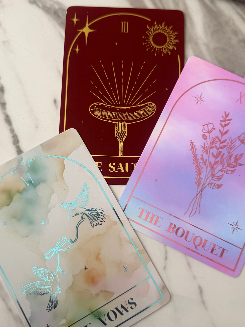 Your favourite Wedding Tarot cards from your Bride to Be monthly mail club, now available in a larger print format so you can show them off properly at home. Designed to bring a little fun, personality, and magic into your wedding era, these prints are perfect for adding a unique touch to your space.